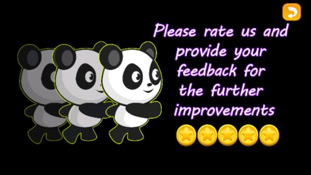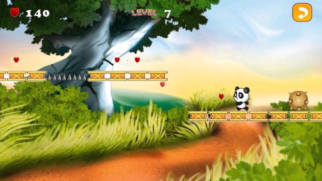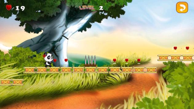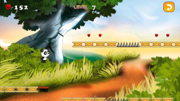 "Panda Run" is an adventure game . A long time ago a panda lived in the jungle tried to escape from the villains and he found himself in another dimension , so he needs to run to survive and return to his natural jungle.You have to help the panda to avoid blocks (Prickly rocks , Wood boxes , lazy bunnies , iron nails ......) by running and jumping over them also collect hearts to earn points . There are some boost Powers in the game like the speed zone start rabbit , speed zone and snail , the super jumping zone