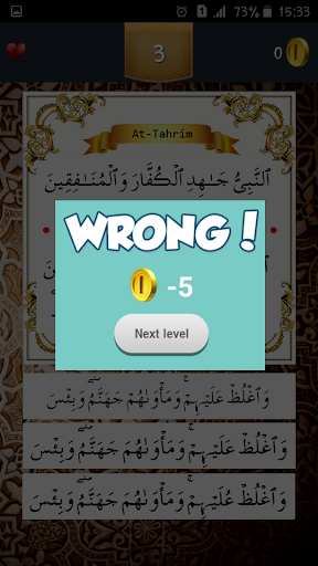 4. Please answer one of the choices of several random passages that belong to a surah in theis Section, if your answer is correct then push ‘next level’