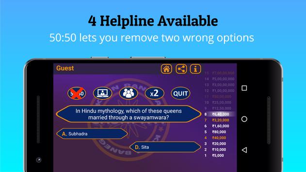 - Share KBC Quiz Question as image on facebook, whatsapp or any social networking site to ask for your friends help.