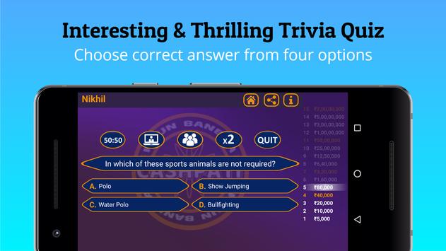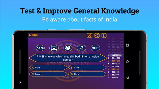 KBC game is made for you to increase your general knowledge and be aware of facts on India. KBC app lets you experience the thrilling excitement of fighting for the grand prize of 7 Crore through 15 challenging trivia questions. We do not give real money since this game is virtual but knowledge you gain from KBC app is real.