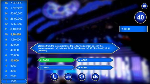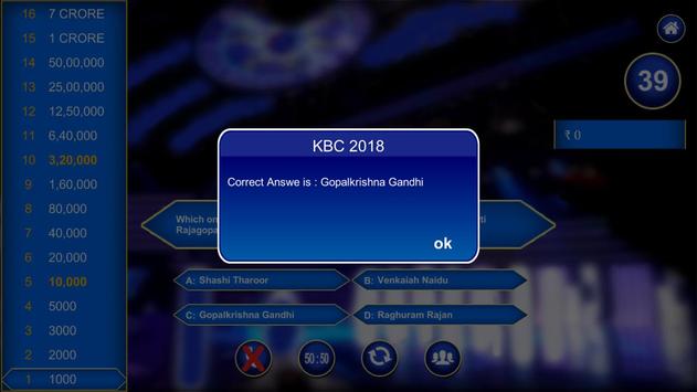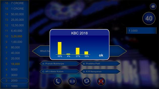 KBC 2018 has Awesome UserInterface and Sound. It is very intresting to play Quiz like KBC format. You do not need any internet connection.