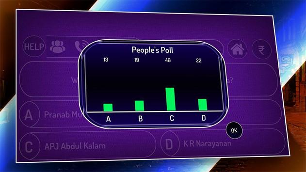 50:50 life line will remove two wrong answers. Audience poll will give you the right answer most of the time. Call a friend life line won't allow you to call a friend but it will show you the right answer. And finally flip the question life line will change the question and you will get the new question. The amount you can win minimum is 40000 rs and maximum is 7crores.