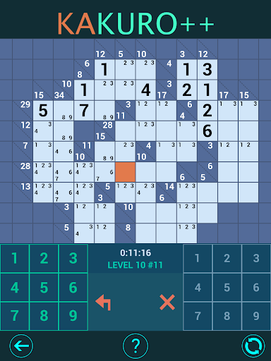 Kakuro Plus offers 11 different game levels and 200 puzzles per level: It will probably take you more than a couple of hundred hours, and a lot of logic to get these 2200 puzzles finished.