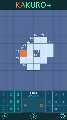 Kakuro (also called Kakkuro, kakro, cross sums or カックロ), is a logic game that consists of filling in a grid of numbers, in the same way as a crossword puzzle. If you enjoyed Sudoku logic, you'll love Kakuro's puzzles