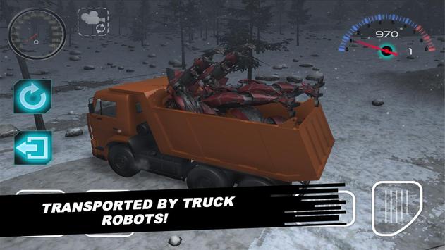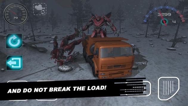 In the world of futuristic robots attacked, but the military beat them and now you have to collect them all over the land and take the research center. The center will study the futuristic robot and acquire new technology from him. You government issued Kamaz and you'll carry it on futuristic robots. These robots could turn into a car and use the superweapon. Perhaps somewhere we were the futuristic robots, so beware of cars. Only these robots could transform into cars.