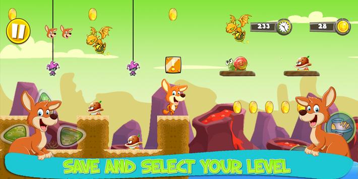 You can help the hero kangaroo and reach the castle before dark. Kangaroo will soon tire during Super Kangaroo Adventure during the race. Please take the necessary measures to maintain the health of the Super Kangaroo.