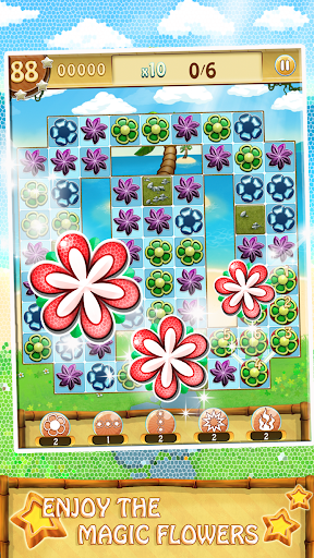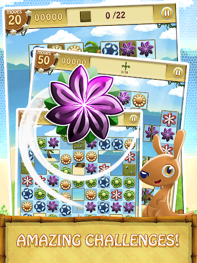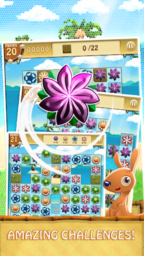 Help Kango the kangaroo collect magical flowers from the lost island! Link flower buds of the same colors to make beautiful flowers blossom and clear the flowerbeds before you run out of moves!
