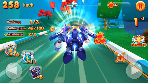 When your car transforming, you'll get fast speed moves and become the Robo-Car knock-out all your opponents on the race. This is really a great robot wars. Using the right transforms at the right time will bring out the unexpected winnings. You can get a random transforming item on the race or fixed equipment by buying a transform item in the store.
