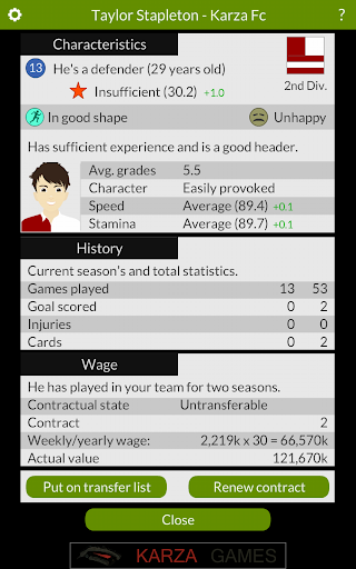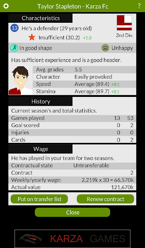 - View individuals players skills, statistics and contract details: pay attention also to their morale and fitness.