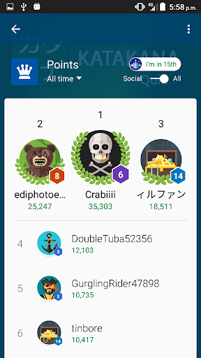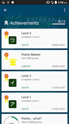 Katakana chart with expirience bars will help you to memorize and follow your progress. Start katakana adventure or test your skills.