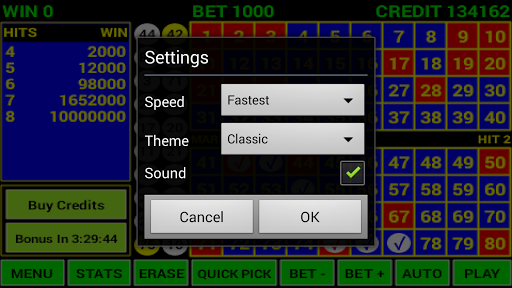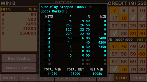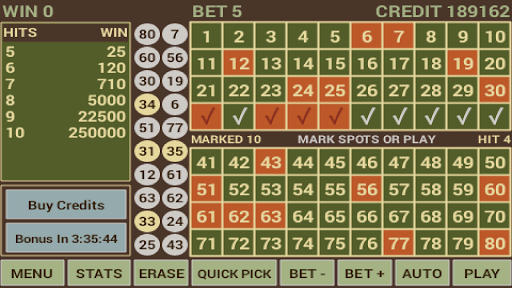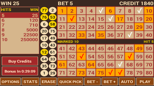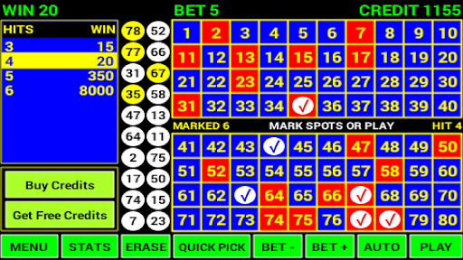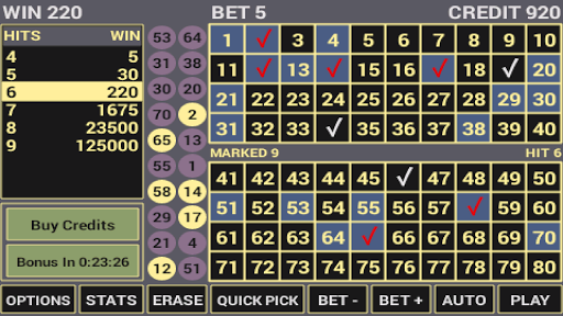 3) Tap PLAY and 20 random numbers will be drawn from pool of 80.