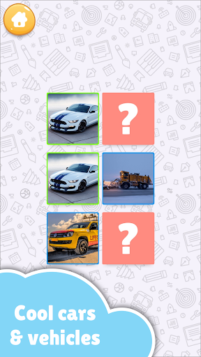 The popular Pairs game (also known as Concentration, Pelmanism, Shinkei-suijaku, Pexeso) to train your kid's attention and memory, with multiple difficulty levels and colorful pictures of cars, trucks, trains and mc.