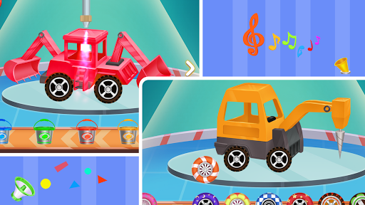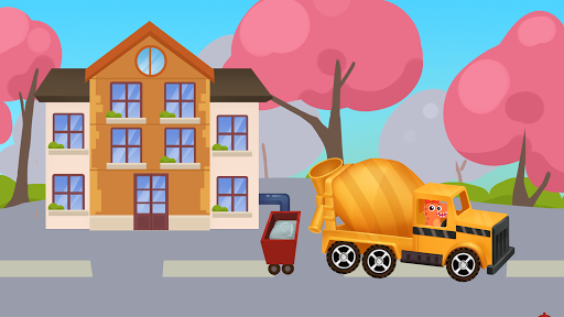 Play 12 construction trucks including: bulldozer, concrete mixer, crane, driller, dump truck, excavator, forklift, grab loader, tower crane, wheel loader, wrecking ball truck and back hoe loader. Design your own trucks, be a truck driver, and help wash the trucks after a heavy working day.