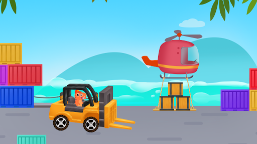 Simulation drive - driving trucks and play interactive games to learn about trucks on construction sites, cargo terminals, cargo helicopter sites etc. Find surprises on the map by digging dinosaur fossils, treasure chests, and more.