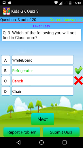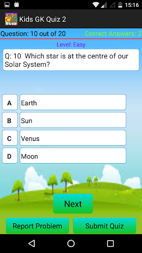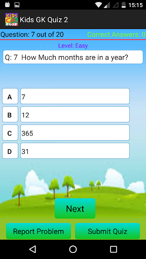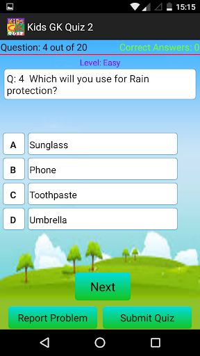Kids GK Quiz (General knowledge) has approximate more than 400 questions in different questions.