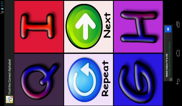 4. Find:-It is a kind of test. Child is asked to find an alphabet. Child has to listen the alphabet sound and choose the right option. If a child chooses the wrong option kid is given another chance! If child is not able to hear the question, there is an option of repeat!! Press Next button to proceed with next question.