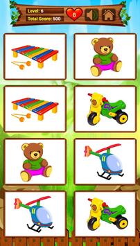 Kids memory game helps you to improve your memory, it Contains toys images.