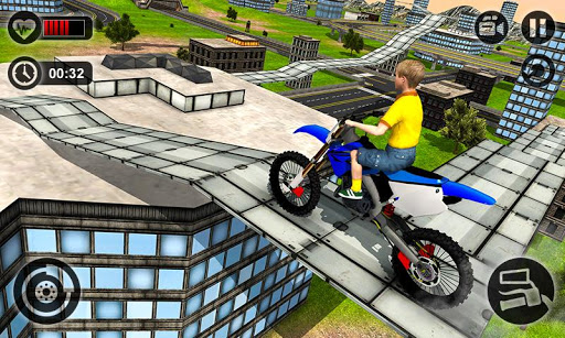 Motorbike driving is a thrilling fun adventure for the kids that like motorcycle games and are bike lovers. Kids Roof top Motor Bike Stunt Rider is extremely design with realistic and dynamic motorcycle physics. While driving crazy moto on mid-air ramps change gears with precision to control speed for perfect balance of bike. On sharp turnings avoid fast racing to prevent road accidents with motorcycle crashing.
