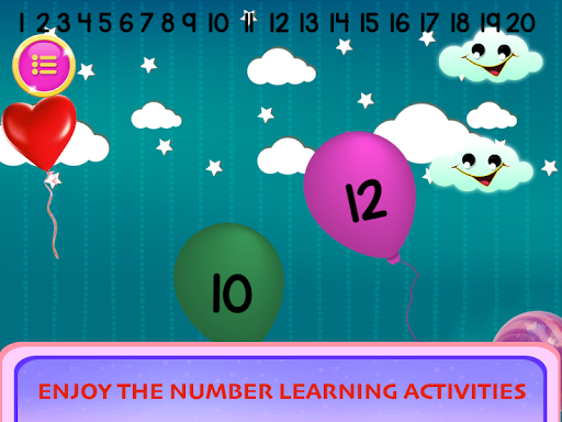 • 1 - 20. Pop balloons containing numbers.
