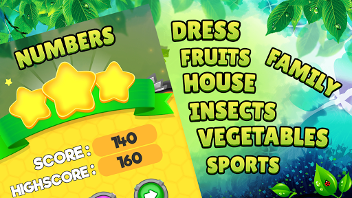 The objective of this addictive kindergarten game is to drag each word and put it in the right place to form a word to complete the current level and go to the following one. But, Keep in mind that there are many levels and many categories to play and your kids will enjoy playing this new educational preschool kids game. Your kid can take his time thinking where he will place each letter to form a word in to finish each level before going to the following one in this guessing game.