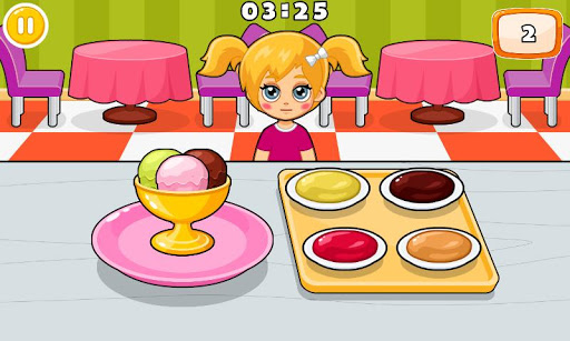 Kids cafe is an amusing cake making game that offers to icy food maker pleasant pastime. But this application has what many other ice cream games do not – it is an educative element. Kids have to be very attentive in order to manage to choose appropriate ingredients for desserts. Therefore, making orders for Ice cream fever is nothing but an original way to develop concentration and reaction. Then, cake maker is limited in time, so Kids Cafe helps children to learn how to budget their time and use it profitably.