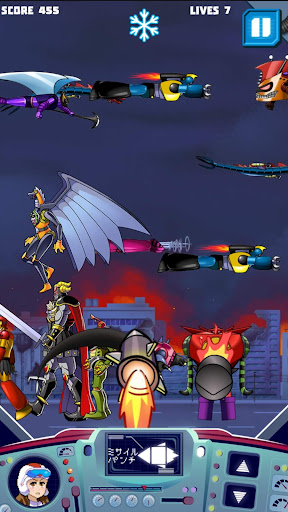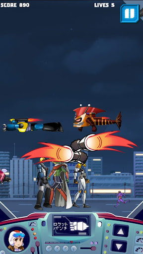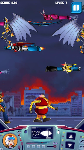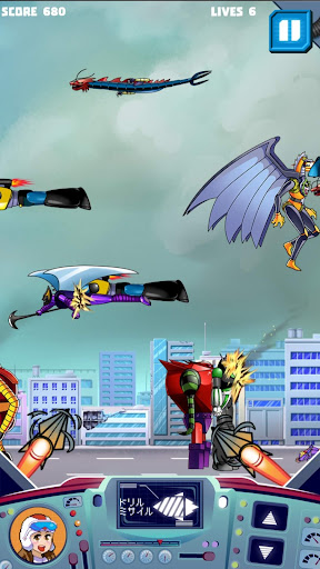 The game starts in the Mazinger Z cockpit at the Photonic Laboratory and you can select with your finger different weapons from this powerful robot:
