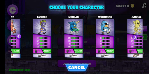 Free games often provide a special and challenging way to collect coins. In Killers Game, the more you kill, the more coins you will earn. By that you can unlock more powerful characters which also have higher capacity for improvement that includes health, shield, jump force and speed. All of which boost the rush wars!