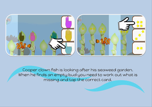 Cooper Clown Fish is looking after his seaweed garden. When he finds an empty you need to work out what is missing and tap the correct card.