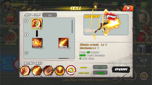 Collect the money and upgrade the skills.Much fun and enjoy it!