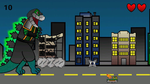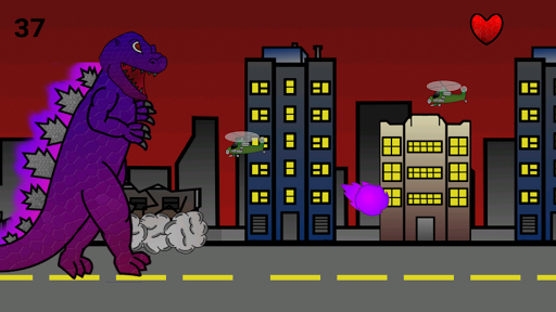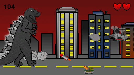 In King of the Kaiju, players take control of a Godzilla-like monster that is rampaging through the city and the military is out to stop you. Tap the screen to fire your Atomic Fire Blast attacks and stop the military Tanks, Jets, and Helicopters that are attacking you. Take them out quickly or their forces will overwhelm you.