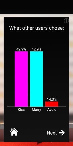 • Decide whether you would kiss, marry or avoid that celebrity.
