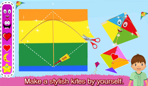 Kite lover wants to make their own kite. This kite maker game make it possible for you to make kites like kite factory. After kite making test your skills for of kite flying. Playing with kites is hobby of many girls & boys and they wants to have kites challenge with their friends. This kite flying game is full of fun and adventure. Choose paper of different designs for kites, then use sticks to make kites of different shapes, then combine all paper pieces and sticks with and scotch tape. This kite game lets you experience the process of kite making through kite making factory simulator.