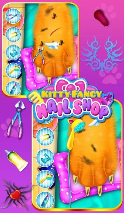Kitty fancy nail shop is a new type of kitty game for kids where they can play with a kitty like they are playing with a real one. This is a game for kids where they can do different and beautiful nail design for the kitten. Many different nail design and paintings are used to decorate the nail of the kitten which will make your kitten really beautiful. So let's help he kitten with her nail make over and make her the most beautiful kitty in the town.