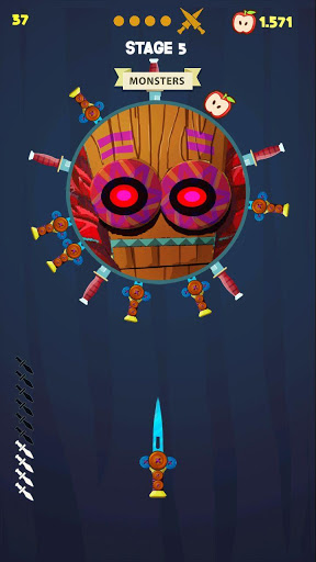 Throw the knives into the fruit to break them. Slash the apples and unlock new knives. Each 5th stage is defended by a boss - beat them to get exclusive knives!