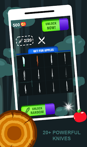 Throw the knives into the logs to break them. Slash the apples and unlock new knives. Each 4th stage is defended by a boss - beat them if you can and become a wonder Knife master of the world!