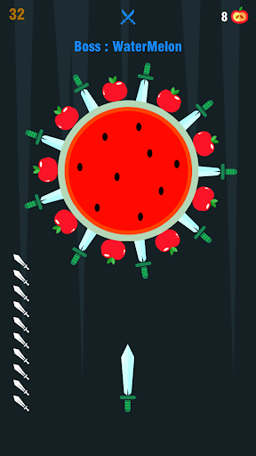 As you progress, the challenges become harder and you must time your throws to perfection! After every 5th level, you have a boss encounter in which you must complete an even harder knife throwing challenge!