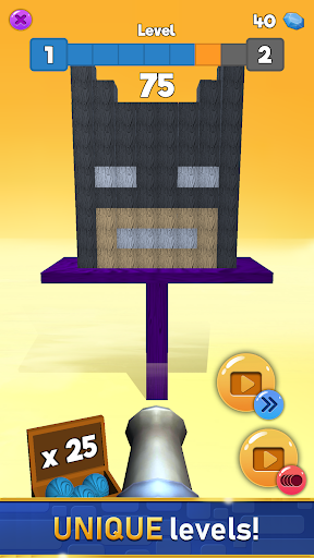 Throw balls and knock all of the blocks to advance to next level. You have limited balls each level so if you are stuck, use power-ups to advance!