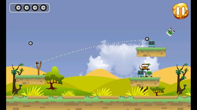 The game is to knock down the Bus and Truck using a slingshot and small Car balls.
