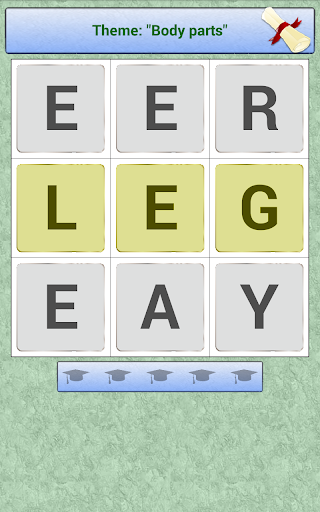 On the second level the quiz has 4 words for each theme and 4 letters long each.