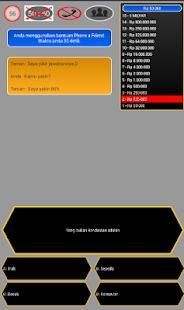 This game is a quiz show on television that offer prizes of cash in large amounts for participants to answer 15 multiple choice questions with benar.Permainan is also beneficial to sharpen the brain and increase general knowledge.