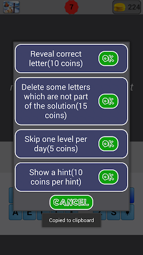 96 уровней - есть функция справки (удаление слов, пропустить вопросы, ключевые слова и т. Д.)