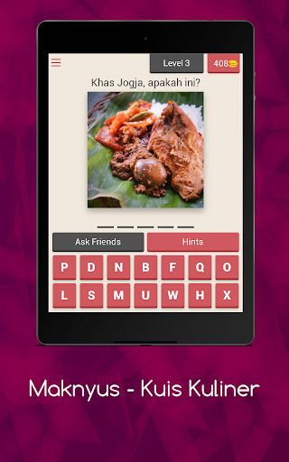 If you want to help the maker of "Maknyus - Indonesian Culinary Quiz" to add the name of Indonesian food that does not yet exist in the game, please send the name of the food and the region of origin to nisapistudio@gmail.com.