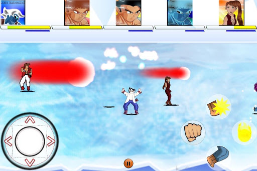 This game lets 2 users to hold the device and fight the bad guys. You can choose from 5 Fighters.