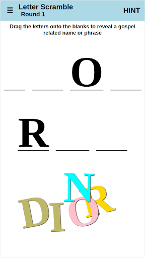 Letter Scramble: Drag the scrambled letters onto the blanks to reveal a gospel related name or phrase.