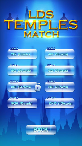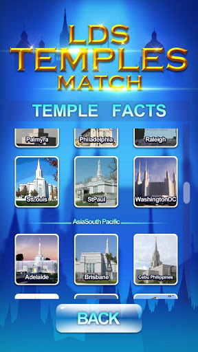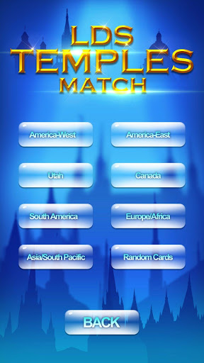 LDS Temples Match app where Temples of the Church of Jesus Christ of Latter Day Saints are displayed for the game player to find the match. 150 temples are available. Users can choose from 6 regional categories from different areas of the world to match the temples from those regions. Great church game to learn interesting facts about LDS Temples, entertain your children spiritually during church and exercise your brain.