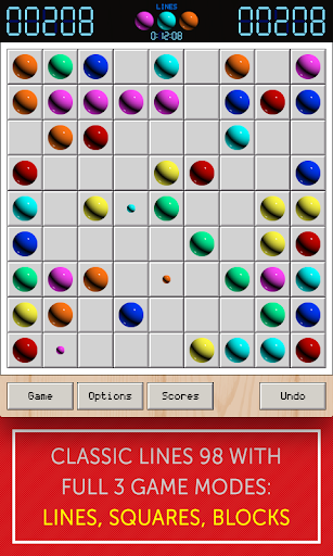 LINES 98 - Lines, Squares, Blocks based on Lines 98 classic game on desktop, is an addicting puzzle game where the player is challenged to keep the board empty by strategically eliminating balls of same color. There is 3 game modes: