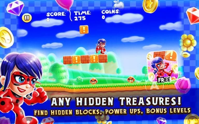 + By eating an apple you will become a super Silver Ladybug, gain magical powers, and then be able to destroy bricks!
