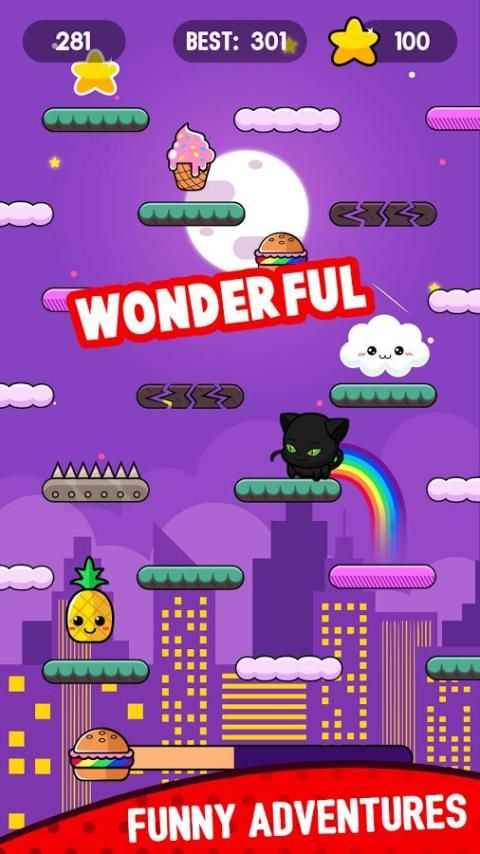 Endless arcade will not leave anyone indifferent. Jump from platform to platform, collecting as many stars as possible. ✨ But do not forget to bite on the road burgers and donuts !