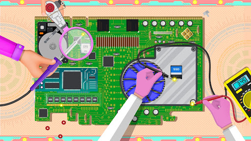 Little mechanic! Start the laptop assembly process from melting the plastic and filling it in molds to build laptop body case. Cool down the molten plastic and take out the body from molds on conveyor belt. It’s time for creative engineer to assemble the CPU & motherboard. Be the pro repairman to build and design the computer CPU, first cut the semi-conductor sheet to manufacture the laptop motherboard. Use laser cutting machine to prepare the motherboard for assembling electric chips. Use machines to fix the graphics card, CPU, DVD and other electricity supply objects on the main circuit board. Work like a crazy mechanic and repair guy and use soldering machine to join all electrical stuff. Working on computer board is same as smart mobile phone. Along with builder and maker stuff also work as manager to handle all other factory games construction activities.