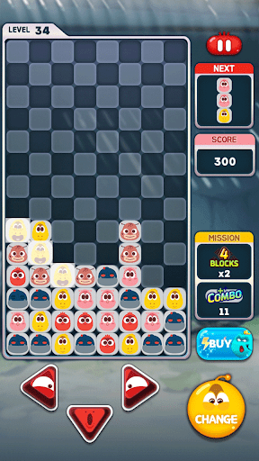 If you match 3 or more blocks of the same shape horizontally, vertically or diagonally, the blocks will be broken.